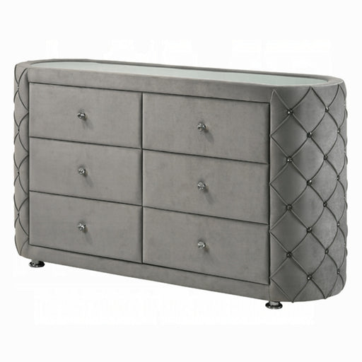 ACME EastThe Perine Collection is luxuriously designed and upholstered in sumptuous gray velvet and features black piping. The hardwood wooden frame is desi...