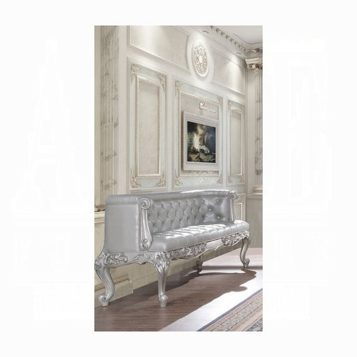 ACME EastACME Versailles Bench, Fabric & Antique Platinum, 65" x 28" x 20"H, 72Lbs. Materials: Upholstery, Poly Resin