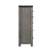 The Wade 5-Drawer Gentlemans Chest is the ultimate chest for your bedroom! This chest comes with five, spacious drawers; perfect for easily keeping all of your belongings neatly stored away. This piece also comes with a cabinet with interior shelves for extra storage space. The bottom drawer features a dust proofing layer to help protect your belongings. The drawer pulls and trim along the top of the chest are both metal with a black finish. Along the trim on the chest are decorative bolts, adding a little extra flair. Please note wood grains vary piece by piece and will not look exactly like the picture. Features: • Five Spacious Drawers • One Spacious Cabinet with Interior Shelving • Black, Felt-Lined Top Drawer • Metal Drawer Pulls in Black Finish • Black Metal Trim along Top Edges with Decorative Bolts • Gray Finish • Straight Legs • Dust Proofing on Bottom Drawer • Anti-Tipping Dimensions: Depth: 18.0" x Width: 38.0" x Height: 52.0" Weight: 172.0 lbs.