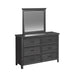 Complement your child's bedroom with the modern sophistication of the Hampton Kids Dresser with Mirror Set in Charcoal. Designed with durability in mind, this dresser's frame is built with solid wood and is finished with a quality, grained oak veneer. A beveled landscape mirror with a frame perfectly matching the dresser is included for a practical touch. Drawers with skillful dovetailing and ball bearing glides are outfitted with sleek and discreet metal pulls, while the top drawers are fashioned with protective felt lining. For those seeking quality, style, and practicality, the Hampton Kids Dresser with Mirror is the clear choice. Features: • Includes Dresser with Mirror • Solid Wood Frame with Grained Oak Veneer • Drawers with Skillful Dovetailing & Ball Bearing Glides • Felt-Lined Top Drawers • Beveled, Landscape Mirror with Frame • Dresser: 56"W x 18"D x 36"H • Mirror: 40"W x 2"D x 36"H • Due to Lighting, Product color May Vary Slightly from Images Dimensions: Depth: 18.0" x Width: 56.0" x Height: 72.0" Weight: 180.0 lbs.