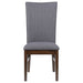 This elegant dining side chair combines comfort and sophistication, making it the perfect complement to any dining table. Upholstered in soft gray fabric on both sides of the backrest and the seat, it offers a cohesive and refined look. The sturdy frame is crafted from rubberwood, providing durability and stability. The gently curved back enhances comfort for extended seating, while the neutral gray tone ensures versatility with various decor styles. Key Features: • Dining side chair with a sleek, modern design • Upholstered in soft gray fabric on backrest and seat • Fabric covers both the front and back of the backrest for a complete finish • Sturdy rubberwood construction for lasting durability • Slightly curved backrest offers ergonomic support • Neutral gray upholstery and brown wood finish complements a range of dining room styles