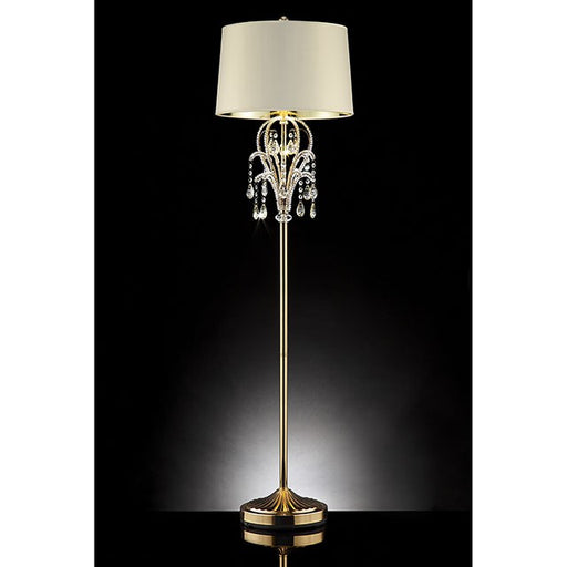 FOA EastBeautiful dangling crystals are the crown jewels of this luxurious table lamp. The metal base and ivory shade add to the simple yet classy design.