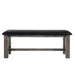 The Nathan Dining Bench w/ Upholstered Seat is the perfect addition to your Nathan Dining Table! This dining room bench features a foam cushion seat, perfect for keeping your guests comfortable during dinner. The seat is upholstered in a black faux leather fabric that pairs perfectly with the rustic gray oak finish. This dining room bench will easily sit up to two people. Square legs complete the rustic farmhouse style of this dining bench. Features: • Upholstered Seat • Square Legs • Faux Leather Upholstery • Foam Cushion seat • Clean Lines • Distressed Markings Throughout • Transitional Style Dimensions: Depth: 14.0" x Width: 47.0" x Height: 19.0" Weight: 28.0 lbs.