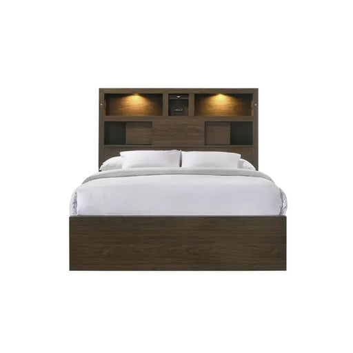 Elements International Jax Queen Storage Bed in Warm Smokey Walnut