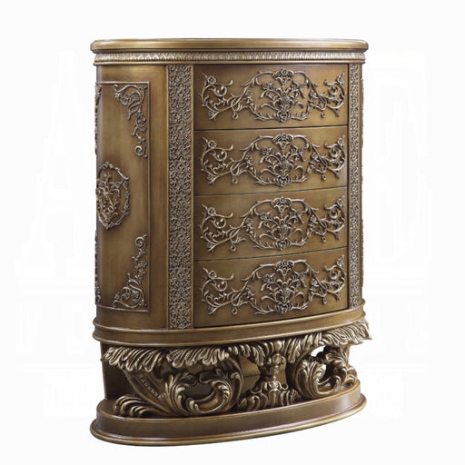ACME Picardy Chest, Antique Pearl & Cherry Oak, 46" x 21" x 55"H, 170Lbs. Materials: Wood, Poly Resin