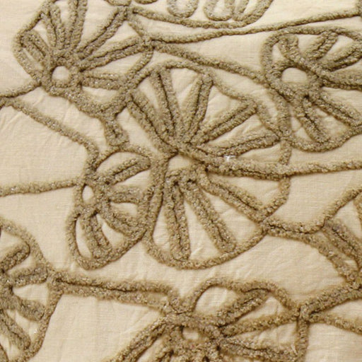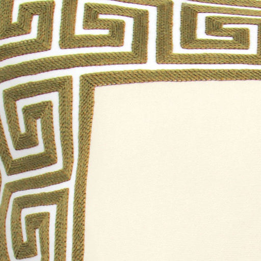 FOA EastThis square pillow features intricate floral patterns in subdued shades of green and brown on an ivory backdrop.
