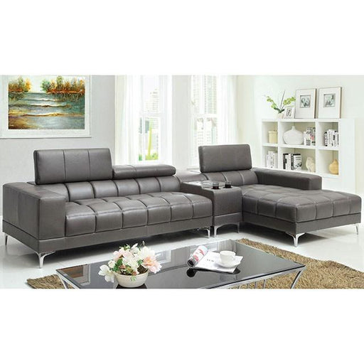 FOA EastContemporary Gray Fabric, Foam, Engineered Wood Track Arms w/ Bookcase Dropdown Table w/ USB-A & USB-C Charging Ports Chaise w/ Storage Pull-O...