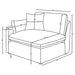 This modular sectional sofa blends modern style with luxurious comfort. Upholstered in soft performance fabric, it features feather blend-wrapped box cushions with reversible seating and backs for lasting support. Tailored topstitching and slim track arms create a sleek contemporary look, while plush accent pillows enhance comfort. Treated fabric resists moisture, allowing for easier maintenance and everyday durability. Designed for lounging, this sectional offers both elegance and versatility. Key Features: • Six-piece sectional in ivory fabric with slim track arms and tailored topstitching • Reversible seat and back cushions with feather blend filling provide soft comfort • Moisture-repellent treated fabric simplifies cleaning and everyday maintenance • Ottoman with plush cushion functions as footrest, coffee table, or extra seating • Accent pillows included to enhance comfort and complete the sectional design • Durable frame construction ensures strength and long-lasting living room use