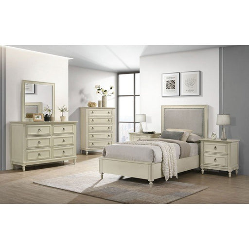 Merrilee Collection by ACME Furniture Modern casual style Oak finish 2 Drawers Center metal drawer glides Antique brass metal hardware English fr...