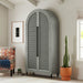 Accent your home with the bold presence of the Libra Bookcase in Sage. The versatile earth-toned finish complements various color palettes and décor styles, while the elegantly arched silhouette marks modern style. Elongated black pulls function as cabinet door handles that perfectly complement slightly tapered feet. Slatted cabinet door fronts open to reveal four shelves offering ample storage space for setting your favorite books, magazines, and/or work files, and the quality pine veneer enhances the piece's durability. For a functional and quality addition to your home, the Libra Bookcase in Sage delivers in quality and design. Features: • Pine Veneer Enhances Durability • Arched Silhouette for Modern Style • Aesthetic Slatted Door Fronts • Black Legs & Door Handles Add Sleek Contrast • 4 Shelves Offer Ample Storage Space • 44"W x 18"D x 89"H • Due to Lighting, Product Color May Slightly Vary from Images Dimensions: Depth: 18.0" x Width: 44.0" x Height: 89.0" Weight: 167.0 lbs.