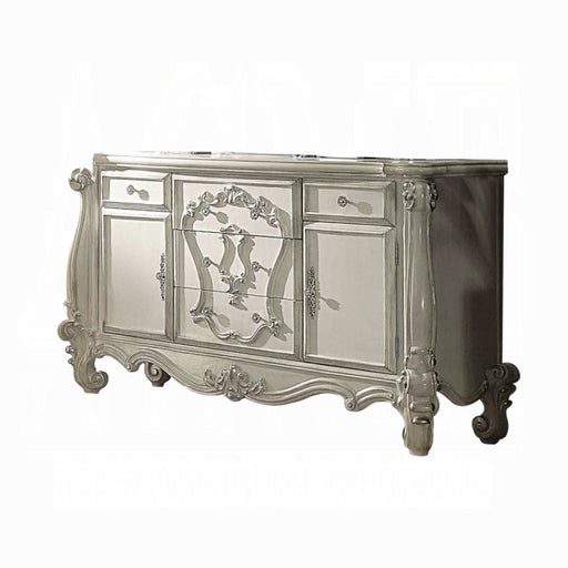 ACME Versailles Coffee Table, Cherry Oak, 59" x 41" x 21"H, 121lbs. Features: - Exclusive Design - Occasional Table - Open Compartment: Bottom Shelf - Wooden Top - Oversized Scrolled Legs & Shelf Apron: Poly Resin with Antique Contrast Finish - Collection Versailles - Matching Sofa 52120, Chaise 96544, Ottoman 96538, Bench 96539, Also available with Glass Top 82080 & 82100 Materials: Wood, Poly Resin, Wood Veneer